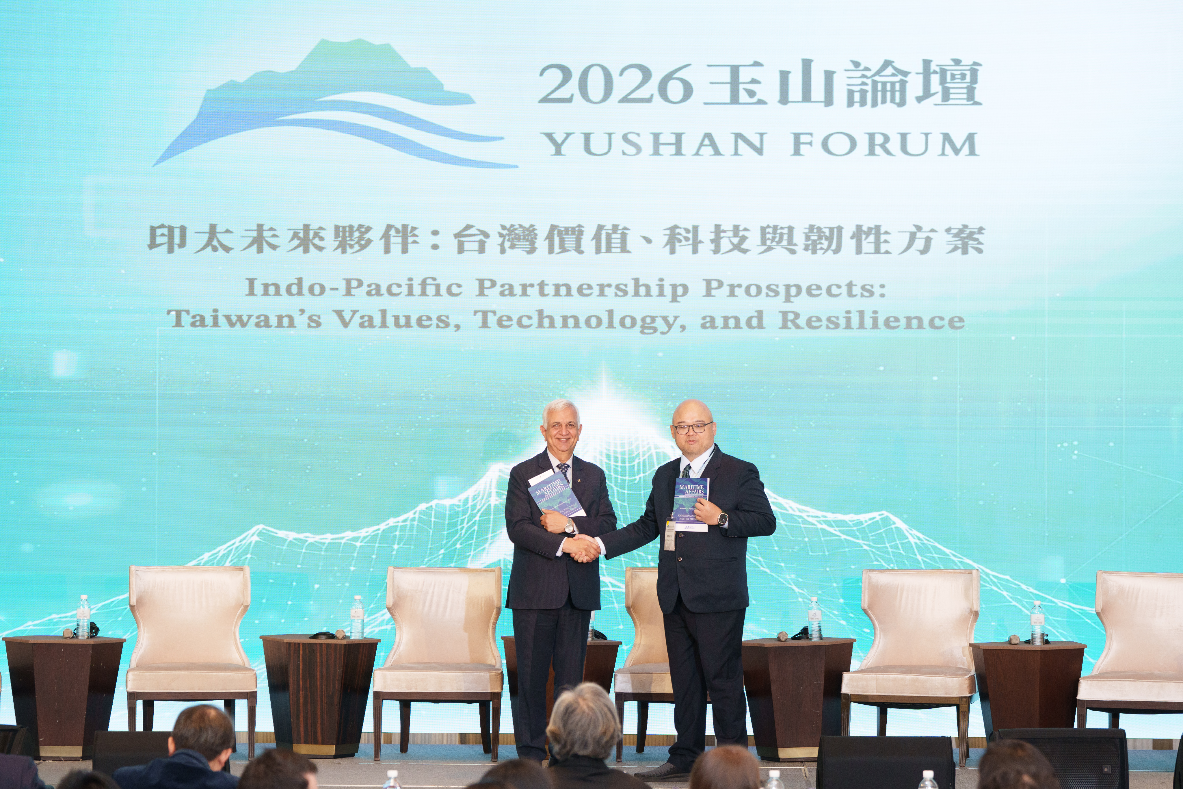 Dr. Alan H. YANG, Executive Director of Taiwan-Asia Exchange Foundation (TAEF) and Vice Admiral Pradeep CHAUHAN, Director General of National Maritime Foundation (NMF), India shook hands